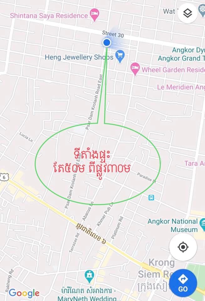 អាចថាផ្ទះក៏បាន ដីក៏បាននៅខេត្តសៀមរាប ស្ថិតនៅទីតាំងល្អសម្រាប់ប្រកបមុខរបរ អាចជាឱសថស្ថាន ហាងលក់វែនតានិងទូរសព្វ ហាងលក់កង់ ហាងកាហ្វេប្រេនៗ ។ល។ ព័ត៌មានអំពីផ្ទះ សូមមើលរូប។ មុនកូវីដអញ្ជើញមកស្រុកខ្មែរ មានគេអោយ $26ម៉ឺន តែមិនលក់ ចង់បាន$28ម៉ឺន ឥឡូវ$25ម៉ឺនលក់ភ្លាម! ប្លង់មហារឹង។ បើបងប្អូនទិញហើយចង់សាងសង់ ខ្ញុំនឹងហ្វ្រីកាឌីសាញ ចង់ធ្វើម៉ូតអីក៏បាន។ ទាក់ទងមកផ្ទាល់តាមលេខ 012807402/016650333/0712222229!